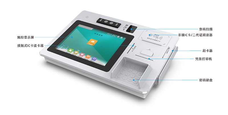The desktop self-service terminal product is specifically designed to provide self-service processing for various card self-service business applications (e.g., finance, China Mobile, China Unicom, water, electricity, coal and bus fees payment and recharging). The product has a small size, beautiful appearance, flexible communication methods, high cost ratio, flexible layout, and is easy to be used widely and expanded on a large scale. It has a good effect in expanding service areas, providing convenience for card customers, establishing and improving the image, and enhancing the market competitiveness.