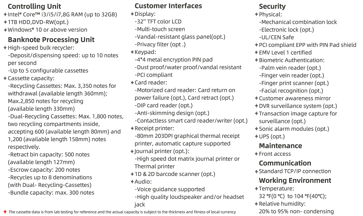 The GT5800H-D11(32 inch)is comprised of cutting-edge cash recyclers, which shift heavy counter transactions to self-service zone. Cash recycling technology requires less cash replenishment volume, reduce cash in transit service frequency and therefore…