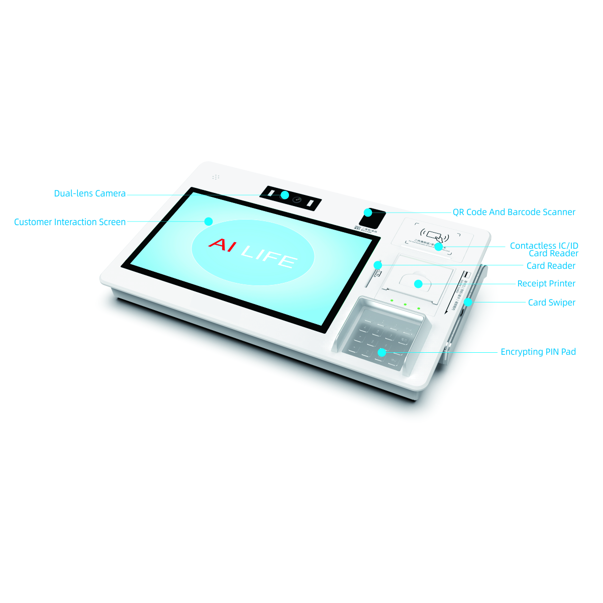 It is applied in office, finance, retail, government services and other fields, and can meet the functional needs of these scenarios, such as identity verification, account inquiry, fund transfer, wealth management, insurance services, contract signing, intermediate business processing, and receipt printing.